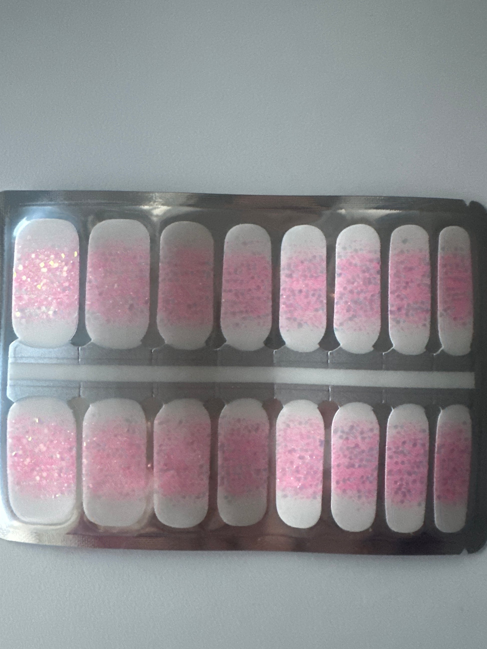 - Zieh die Folie ab und klebe sie auf deinen Nagel. Drücke sie sanft an.