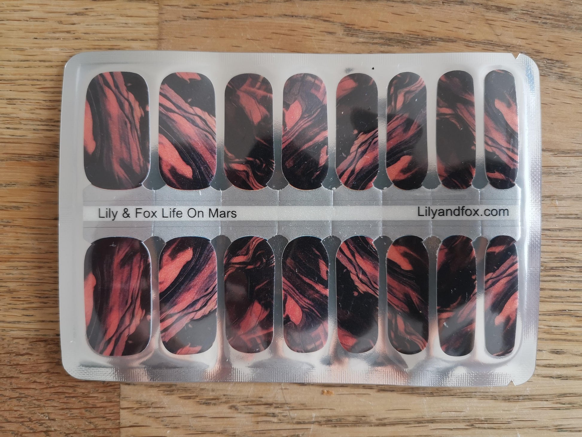 - Zieh die Folie ab und klebe sie auf deinen Nagel. Drücke sie sanft an.